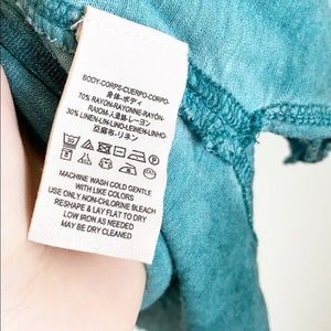 Attached double layer tank top. Raw edges. Slight burn out. Soft with great stretchy. Loose fit so could also fit a small. Great under a cardigan. Made with Fabric Content: 70% Rayon, 30% Linen. New with tags.