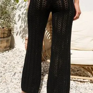 Balmy Breeze Black Crochet High-Waisted Swim Cover-Up Pants