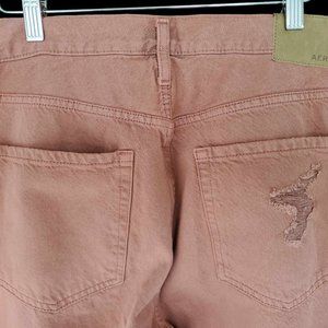 Get ready to add a touch of the 90s to your wardrobe with these Aéropostale mauve jeans! Featuring a baggy, straight-leg style, these jeans are perfect for any casual occasion. The jeans come in a size 10 and have a button closure for a secure fit. Made from comfortable cotton material, these jeans have a unique distressed look with holes and destroyed details. Perfect for anyone looking to add a vintage touch to their outfit, these jeans are new with tags and ready to be a staple in your wardrobe.