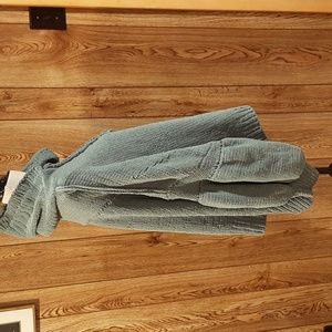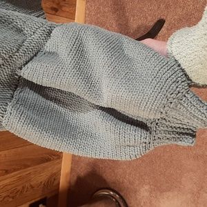 🦕POL Blue/Teal Balloon-Sleeve Chenille Hooded Sweater (Large)🦕