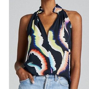 A.L.C Silk Sleeveless Minelli Top in Navy Abstract