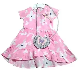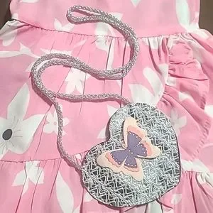EUC Toddler Girls Pink/White Floral Ruffled front dress with matching bag set and a removable girlie brooch. The dress features button closure on the back.