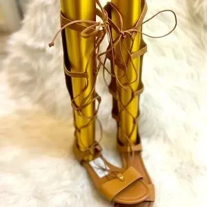 Michael Kors Sofia Sun Tan Brown Gladiator Open Toe Lace Up Back Zip Sandals