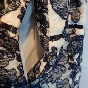 ELIZA J Navy Blue / White Embroidered Lace Formal Sleeveless Lined Dress Size 4P NWOT