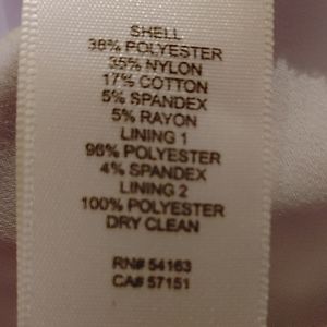 - Shell: 38% polyester, 35% nylon, 17% cotton, 5% spandex