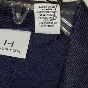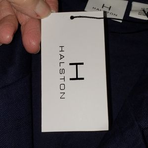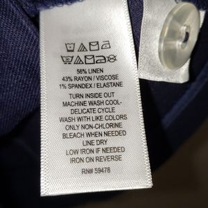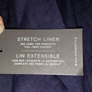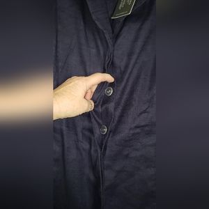 This H by Halston dress is brand new with tags. It is navy blue linen button-down with a fabric belt and slash pockets.