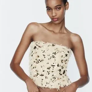 ZARA Sequin Feather Crop Top
