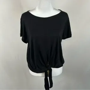 J Crew Black Short Sleeve Tie Front Blouse Size Medium
