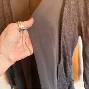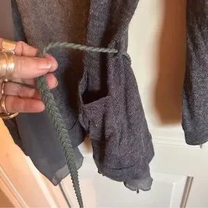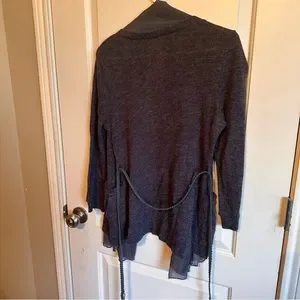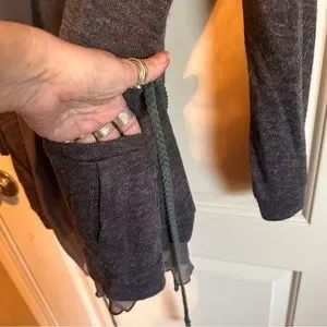 Bluebird Size L dark grey cardigan with sheer around edges and belt with belt loops. This cardigan is so ft it’s unbelievable!! It has a sheer fabric all around the edges and has pockets!!NWOT NEVER WORN