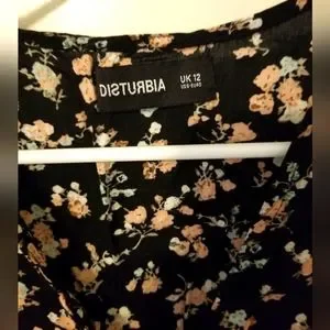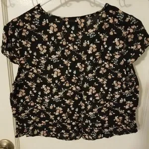black floral ruffle, button up crop top by Disturbia, size UK 12