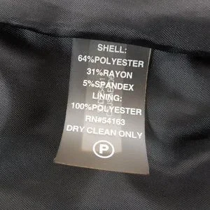 Fabric content: Shell 64% Polyester 31% Rayon, 5% Spandex. Lining 100% Polyester