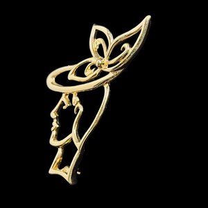 Vintage Lady Remington Gold Tone Fashion Woman Brooch. It is signed LR 1997 .