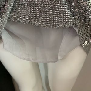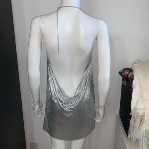EXPRESS Y2K disco Studio 54 silver chainmail metal mesh halter party dress S M