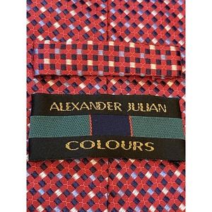 Alexander Julian Colours Hand Made Red Blue Silk Men’s Neck Tie Made In China