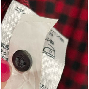 Iconic red and black plaid lumberjack type shirt with black buttons.
