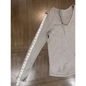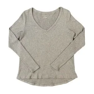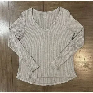 American Eagle Ribbed Knit VNeck Long Sleeve Top Light Gray Soft Stretchy Medium