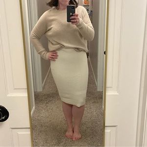 TOM FORD CASHMERE knit knee length pencil skirt. Winter white/ creamy white