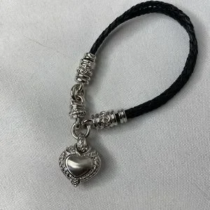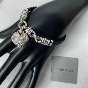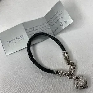 Judith Ripka braided leather cord heart bracelet, sterling silver