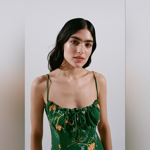 NWOT. Beautiful saturated green. Fitted waist. Adjustable straps. Leg slit.