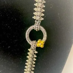 Barbara Bixby unbelievable necklace, each piece has to be bought separate the rings and flower chain sections then added together, 57 grams of sterling and 18kt gold on little flowers, which is a signature mark for Barbara. It is so beautiful and did you know she only makes so many pieces a year.