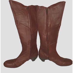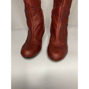 Sergio Tomani W sz 41/10-10.5 Knee Hi Tall Boots Shoes Red Burgundy Leather Zip