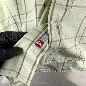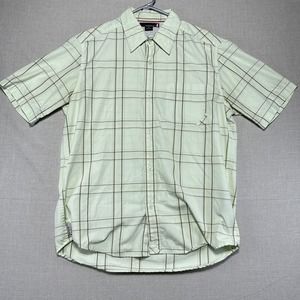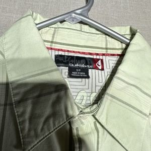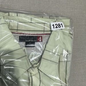 Quiksilver Men’s Shirt Small Button Up Green Short Sleeve Plaid Party