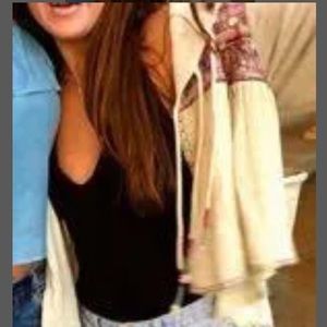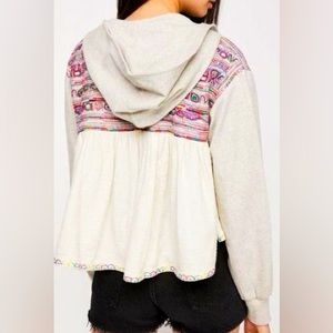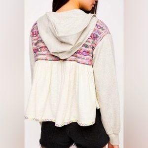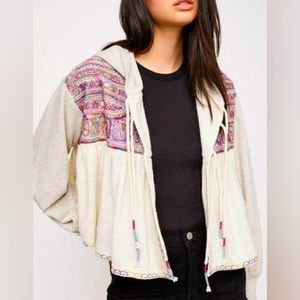 New Free People Hooded Rainbow Embroidered Lg Ivory Tie-Front Jersey Cardigan