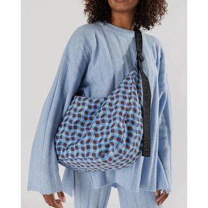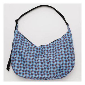NWT Baggu Large Nylon Crescent Bag - Wavy Gingham Blue