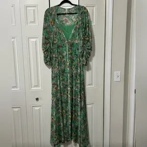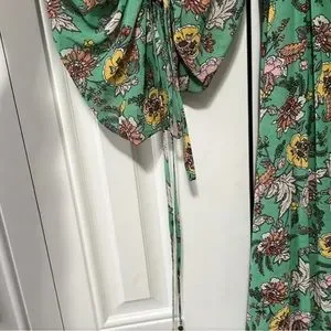 Free People Green floral maxi dress with large blouson ruched & tied sleeves - L