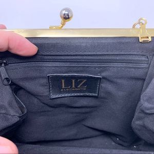 VINTAGE Liz Claiborne Black Faux Leather Clasp Top Purse