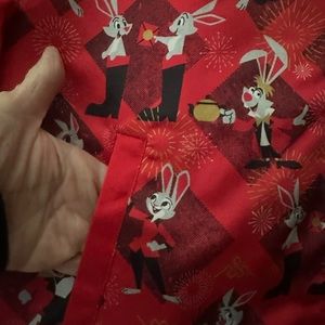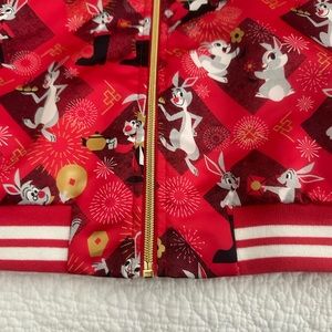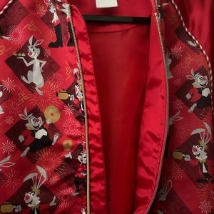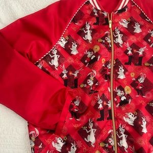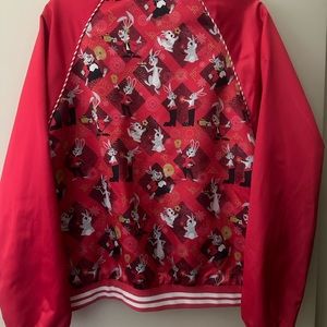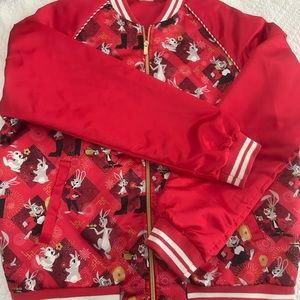 EUC but it looks new. Satin red with Disney’s rabbits and red and white stretch knit cuffs and hem. Two front slip pockets and gold tone zipper. 2023 Year of the Rabbit Disney Parks Jacket. Based on sizing, it seems to be for Men but can be unisex. 24” chest, 24 1/2” length and 19 1/2”to 22” hem. Smoke free