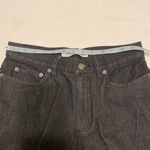 Jacket buttons up the front with side pockets and has the maroon and gray logo lining. Size Small. Jeans have rolled and sewn maroon and gray logo at the hem. Depending upon your height, the pants could be regular length or capris. Waist measures 14 1/2 inches flat (baggy fit) with a 10 inch rise and the inseam measures 29 inches long. Size 4.