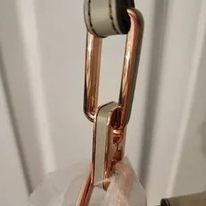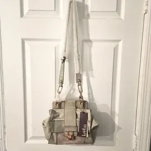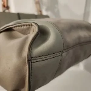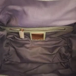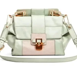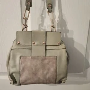NWT LEATHER MINT COLOR EXTERIOR WITH ROSE GOLD CHAIN CROSSBODY/SHOULDER BSG. GORGEOUS POLYESTER COTTEN INTERIOR LINING. ONE INTERIOR ZIPPER CLOSURE..EXTERIOR HAS FILD OVER FLAP WITH TURN CLOSURE..