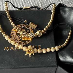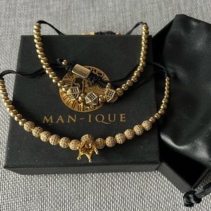 Man-ique mens gold and crystal bracelets. New. Set of two.