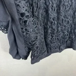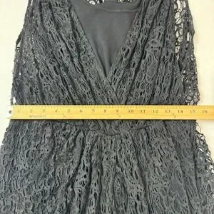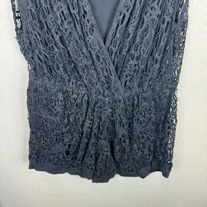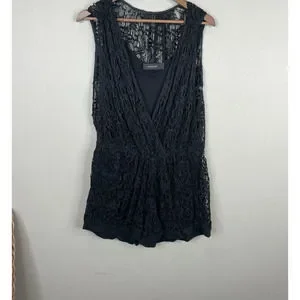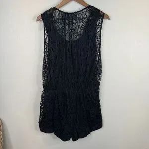 Thakoon Romper Women's 4 Black Lined 100% Cotton Surplice Neck Plunge Crochet