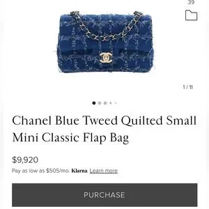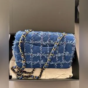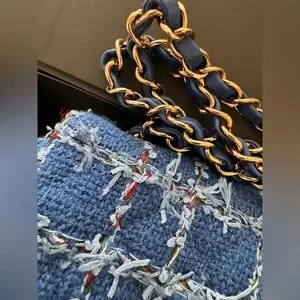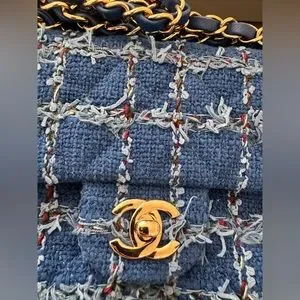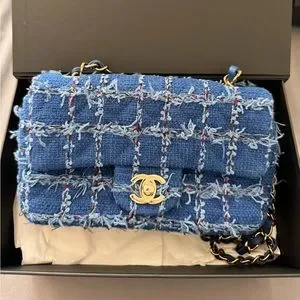 Chanel Blue Tweed Quilted Small Mini Classic Flap Bag