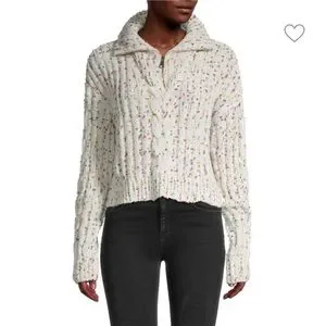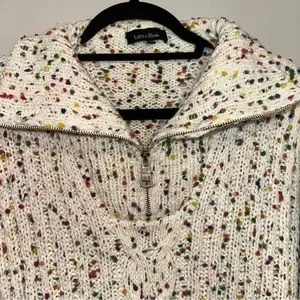 LEA & VIOLA Printed Quarter-Zip Sweater