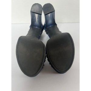 GUESS Peakabo Platform Open Toe Blue Velvet Suede & Pewter Shoes 7 M
