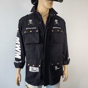 NWT~$345~MWM~SZ M~BLACK WHITE MILITARY SKULL PATCHES POCKETS COAT JACKET SHIRT
