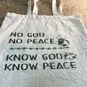 Vintage “ No God No Peace / Know God Know Peace “ Earth & Dove Tote Bag.