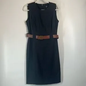 Chaps Denim Sheath Dress Knee Length Crewneck Sleeveless Belted Black Size 6
