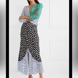 RIXO London Chelsea Dress Silk Polka Dot Maxi | Size M