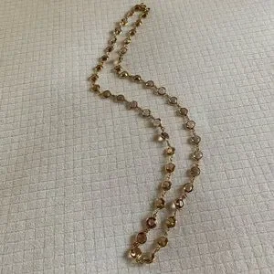 Lovely prismatic pyramid shaped lightly tinted crystals lay beautifully on this long necklace from J.Crew. Goldtone hardware. Buoy clasp with brand charm. Versatile: can be worn doubled or layered. Measures 17.5” long. No known flaws. Professionally cleaned. Worn minimally. No box/dust bag. Well cared for. Excellent condition! HL:15