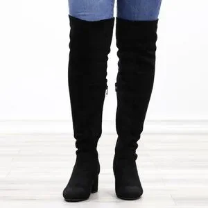 Low Heel Thigh High Boots Faux Suede Back Womens Lace Up Black Above The Knee