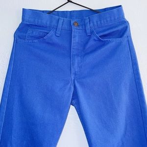 Beautiful blueberry jeans. Made in the USA in great condition. Mans jean. High waisted with five pocket styling with zip fly and button closure. Color is super rare find. No stains or holes. Peloved. Mens Size 29 x 32 with a 28" waist. Refer to measurements for proper fit.
