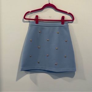 Maje “Jizie” Sky blue bee Embellished crepe mini skirt 1/US S