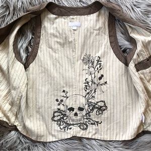 The goofy vest of a rust belt ska punk who used to ride in the trunk for out of town shows when there were too many people to fit in the car. Yes there's some minor discoloration, but it's in pretty good shape considering that its previous owner was a dude who would wander the bar and finish strangers’ temporarily abandoned drinks.