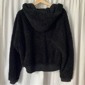 Lululemon Women Textured Fleece Hoodie 1/2 Zip Sz 8 Black Teddy Faux Sherpa