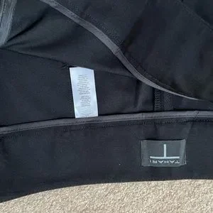 Tahari size 10 rayon, nylon, spandex black side zip pants. Fabric has some stretch. Flat front. See pics for measurements. Excellent condition