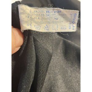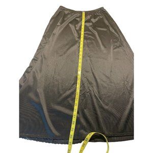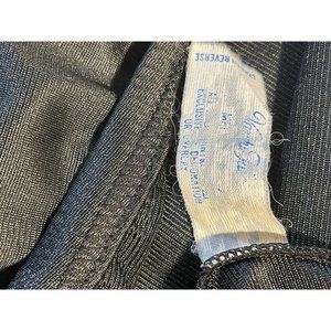 This classic black Vanity Fair half slip is a timeless addition to any wardrobe. Made of machine washable nylon, it features delicate lace accents and an elastic waist for comfort. The pull-on style in size M/L makes it perfect for any season, whether you're dressing up or down. This vintage piece is a must-have for any skirt lover and is sure to be a staple in your closet for years to come.